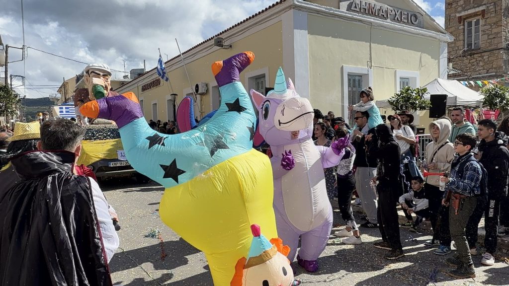 Κάτοικοι της ευρύτερης περιοχής, σύλλογοι, σχολεία της πόλης, ομάδες πολιτών, συμμετείχαν στην καρναβαλική παρέλαση με άρματα και με χιούμορ σατίρισαν την επικαιρότητα.