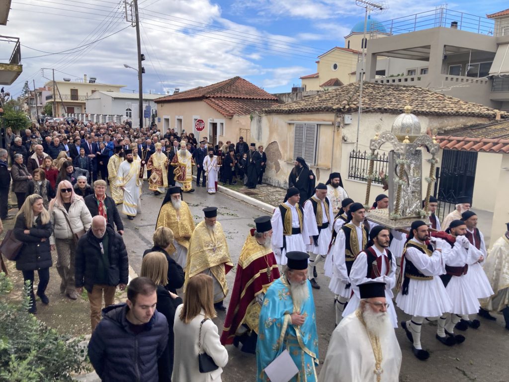 Χθες το πρωί στον Ιερό Ναό Εισοδίων της Θεοτόκου & Αγίου Χαραλάμπους Φιλιατρών τελέστηκαν Όρθρος και Πολυαρχιερατική Θεία Λειτουργία προεξάρχοντος του σεβασμιωτάτου μητροπολίτου Θηβών, Λεβαδείας και Αυλίδος κ. Γεωργίου, ο οποίος και κήρυξε το θείο λόγο, και συλλειτουργούντων αυτώ των σεβασμιωτάτων μητροπολιτών Γλυφάδας, Ελληνικού, Βούλας, Βουλιαγμένης και Βάρης κ. Αντωνίου και Τριφυλίας και Ολυμπίας κ. Χρυσοστόμου. Στη συνέχεια έγινε Λιτάνευση της Εικόνας, την οποία μετέφεραν στους ώμους τους κάτοικοι των Φιλιατρών ντυμένοι με παραδοσιακές φορεσιές, και των Αγίων Λειψάνων του Αγίου Χαραλάμπους στις κεντρικές οδούς της πόλεως, με προπομπούς τις Δημοτικές Φιλαρμονικές Κυπαρισσίας και Γαργαλιάνων και του Συλλόγου Φιλοπροόδων Φιλιατρών, συνοδεία μαθητών σχολείων των Φιλιατρών και πιστών.