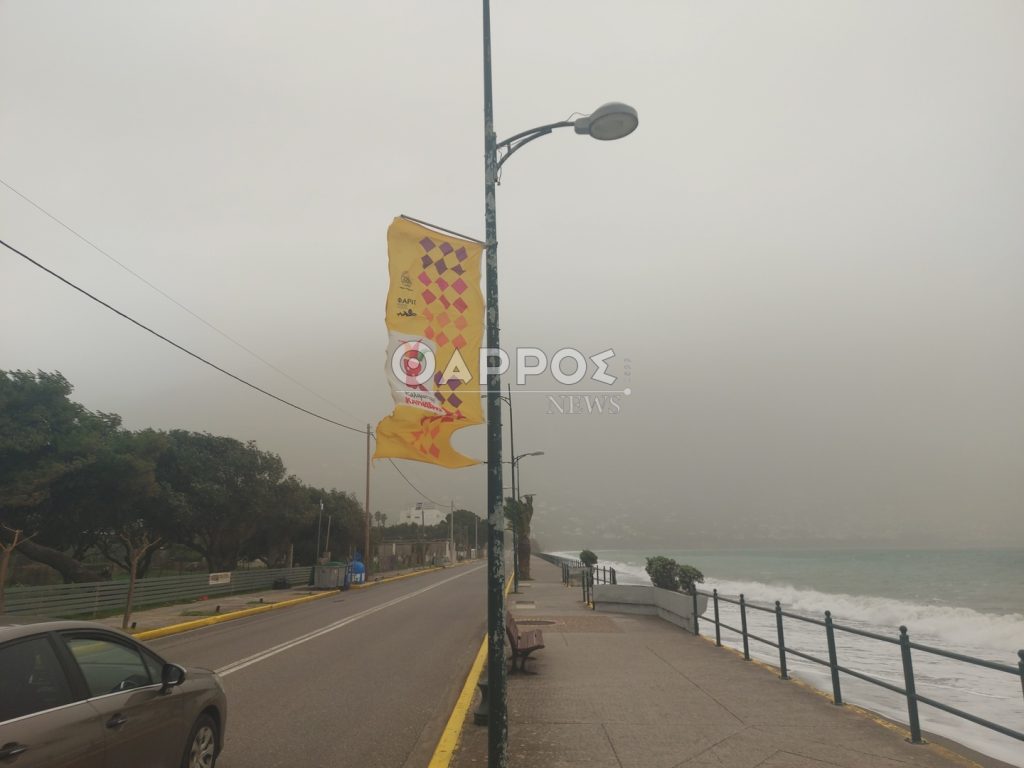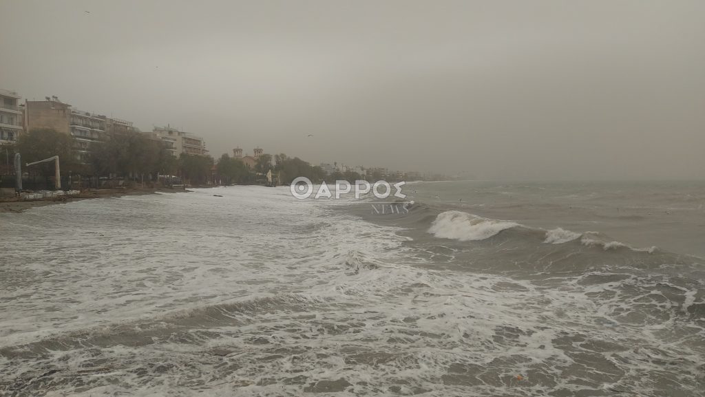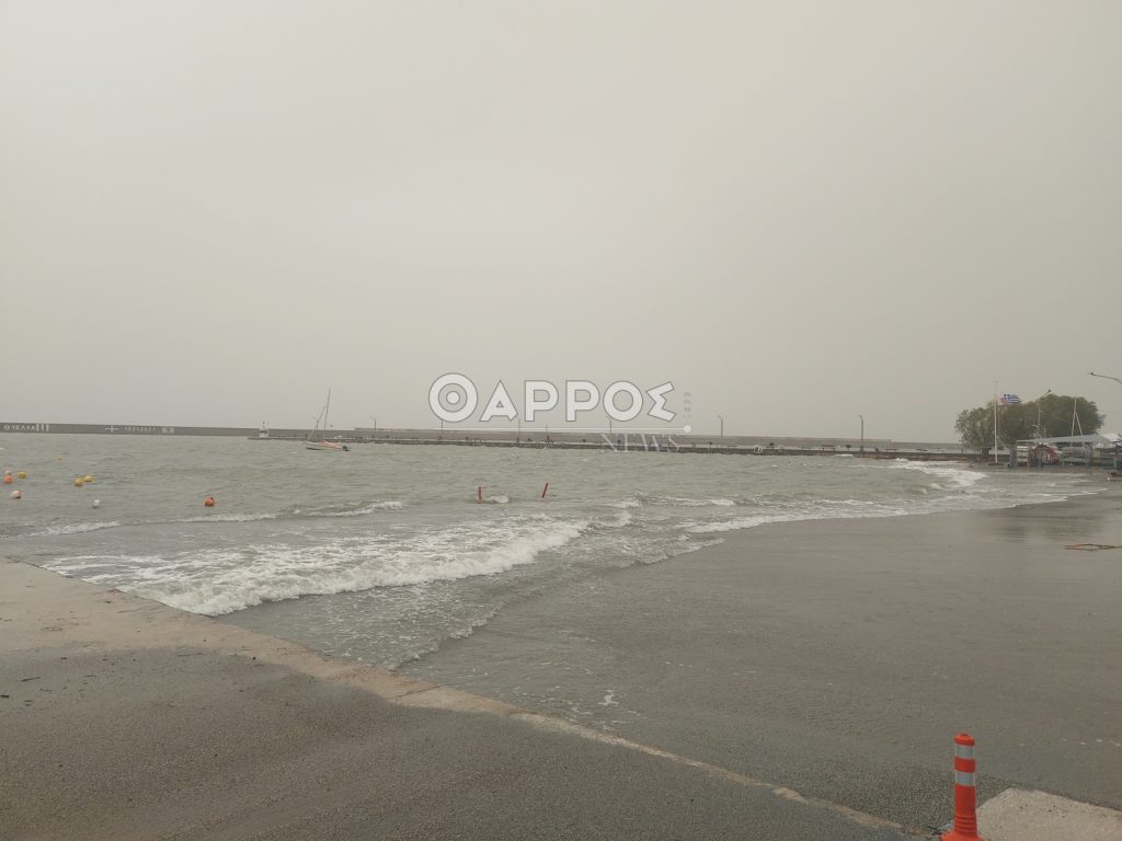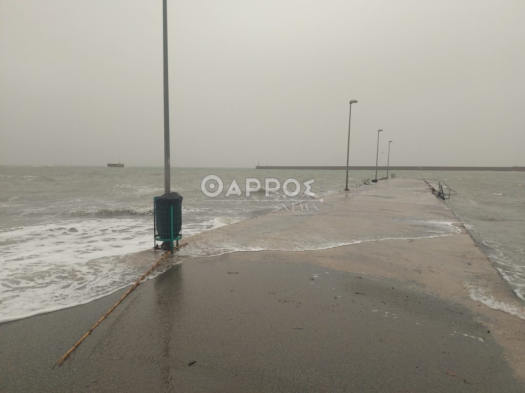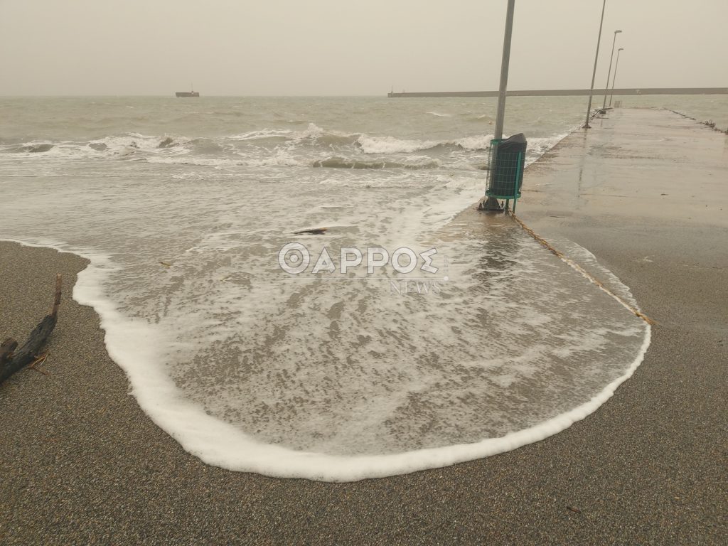 Επίσης από τα ξημερώματα δυνατοί άνεμοι πνέουν στην παραλία δημιουργώντας έντονο κυματισμό.
