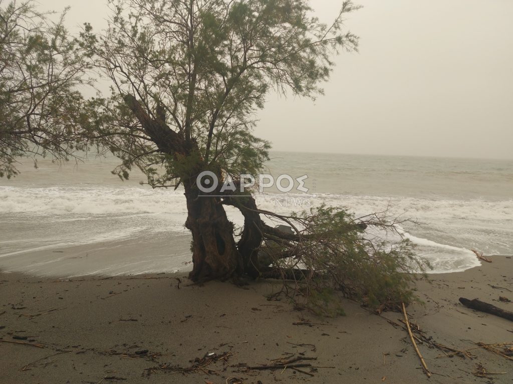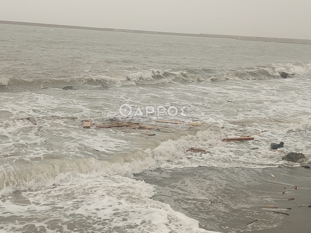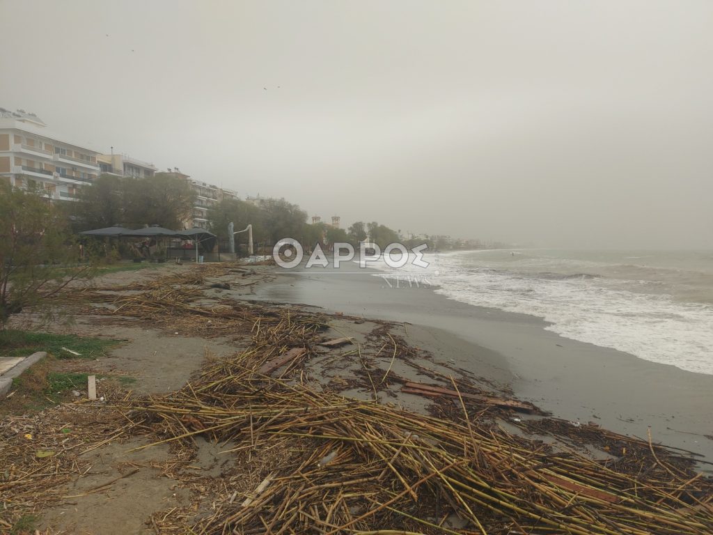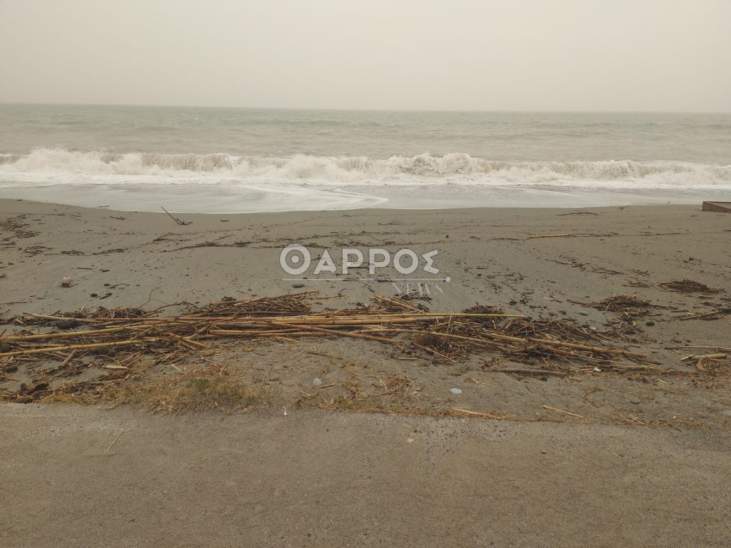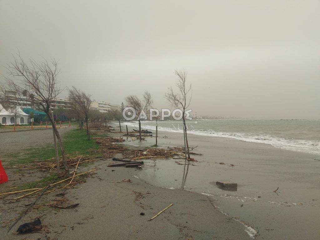 Επίσης από τα ξημερώματα δυνατοί άνεμοι πνέουν στην παραλία δημιουργώντας έντονο κυματισμό.