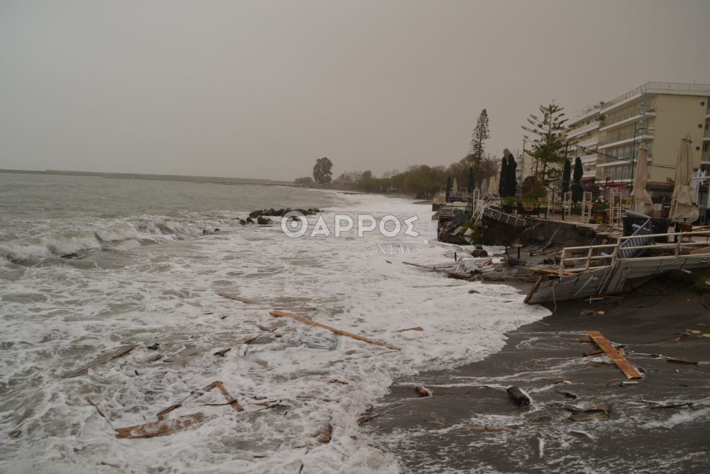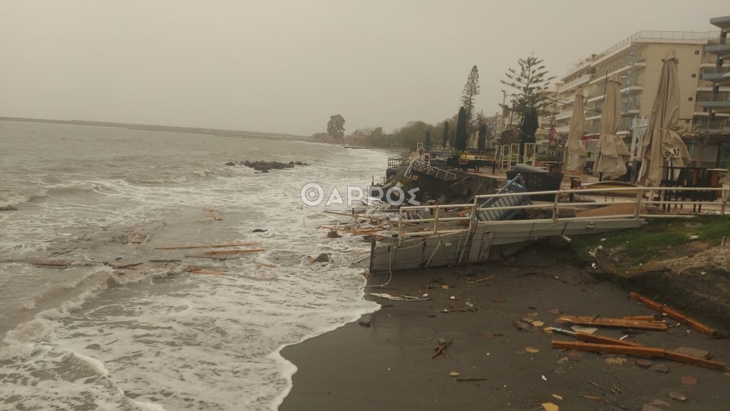 Μέχρι στιγμής δεν έχουν καταγραφεί κάποιες σοβαρές ζημιές, ενώ εξαιτίας του έντονου κυματισμού χειροτέρεψε η κατάσταση σε παραλιακό κατάστημα που έχει κλείσει και η εξέδρα του έχει καταρρεύσει.