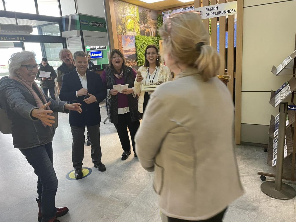 Τους πρώτους επισκέπτες υποδέχθηκε αντιπροσωπεία της Περιφερειακής Ενότητας Μεσσηνίας με επικεφαλής τον αντιπεριφερειάρχη Στάθη Αναστασόπουλο. Στελέχη, δε, του Τμήματος Τουρισμού της Περιφέρειας καλωσόρισαν τους τουρίστες και τους έδωσαν αναμνηστικά, ενημερωτικά έντυπα και μεσσηνιακά εδέσματα.
