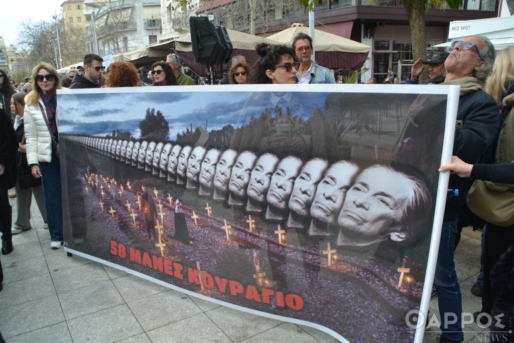 Η εκδήλωση ξεκίνησε με την ανάγνωση κειμένου του Συλλόγου Συγγενών Θυμάτων Τεμπών, έπειτα διαβάστηκαν τα ονόματα των θυμάτων, ενώ ακολούθησαν χαιρετισμοί από εκπροσώπους Φορέων και Συλλόγων που συμμετείχαν στη σημερινή κινητοποίηση.