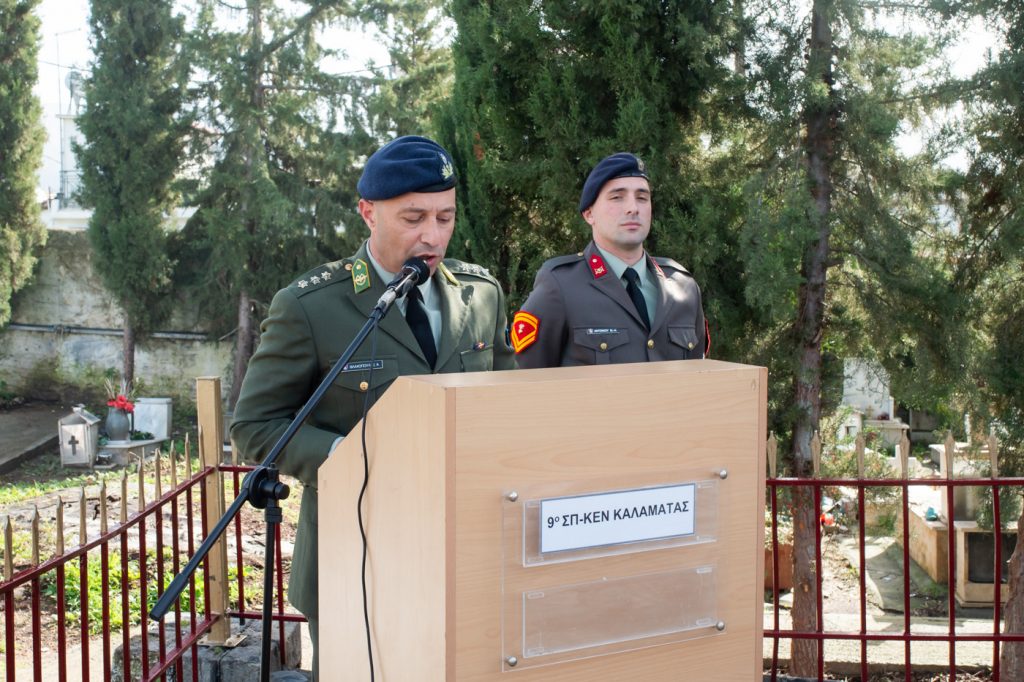 Στον Ιερό Ναό Κοιμήσεως της Θεοτόκου, του Δημοτικού Κοιμητηρίου Καλαμάτας, τελέσθηκε το πρωί του Ψυχοσαββάτου, 14 Φεβρουαρίου ε.έ., το καθιερωμένο Μνημόσυνο των πεσόντων Μεσσηνίων Αξιωματικών, Υπαξιωματικών και Οπλιτών, του 9ου Σ.Π., το οποίο επιμελείται η Διοίκηση του Στρατοπέδου Καλαμάτας.