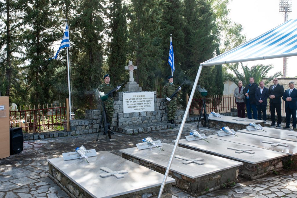 Των Ιερών Ακολουθιών του Μνημοσύνου και εν συνεχεία του Τρισαγίου επί του Μνημείου Πεσόντων, προέστη ο Πρωτοσύγκελλος της Ιεράς Μητροπόλεως Μεσσηνίας Αρχιμ. Φίλιππος Χαμαργιάς, εκπροσωπώντας τον Σεβασμιώτατο Μητροπολίτη Μεσσηνίας κ. Χρυσόστομο, ενώ παρέστησαν ο Δήμαρχος Καλαμάτας κ. Αθ. Βασιλόπουλος, οι Αντιπεριφερειάρχες κ. Στάθης Αναστασόπουλος και κ. Μαρία Οικονομάκου, Αντιδήμαρχοι και μέλη του Δημ. Συμβουλίου Καλαμάτας, ο Διοικητής του 9ου Σ.Π. Συνταγματάρχης κ. Γεώργιος Χαρίτος, πλήθος Αξιωματικών και Οπλιτών του 9ου Σ.Π. και εκπρόσωποι των Σωμάτων Ασφαλείας και άλλων φορέων. Τις δέουσες Τιμές απέδωσαν Άγημα του Στρατού Ξηράς και η Δημοτική Φιλαρμονική Καλαμάτας.