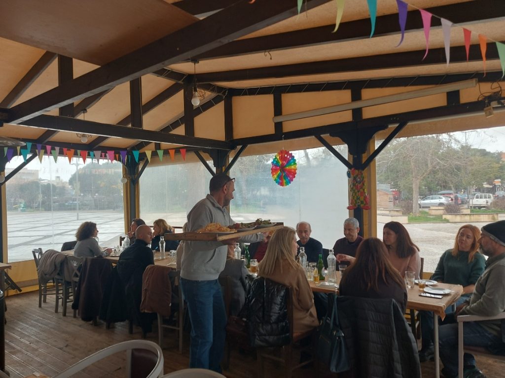 Εκτός από τα κρεατικά, υπήρχαν σαλάτες, πατάτες, τυριά, τζατζίκι και, φυσικά, κρασί, μπύρες, αλλά και βότκες και ουίσκι, με ευχές για χρόνια πολλά και Καλή Αποκριά!