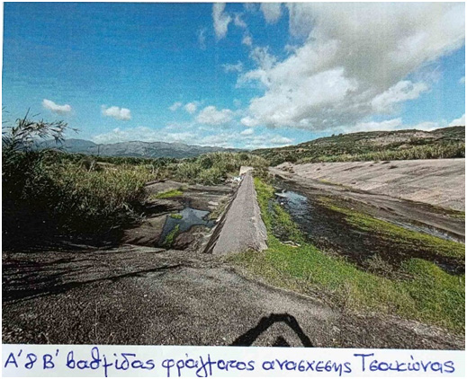 α) Επισκευή το ταχύτερο της τρίτης βαθμίδας του φράγματος ανάσχεσης και συγκράτησης υλικών στην Τσακώνα. Η βαθμίδα αυτή έχει κατασκευασθεί με λιθοπλήρωτα συρματοκιβώτια και από μακροσκοπικό έλεγχο εμφανίζουν σοβαρές βλάβες. Το γεγονός ότι η τρίτη βαθμίδα συμβάλλει και στη σταθεροποίηση του έργου αυξάνει τη σπουδαιότητα της επισκευής.