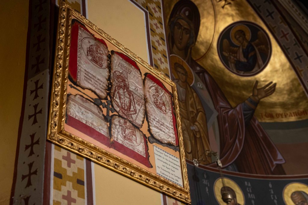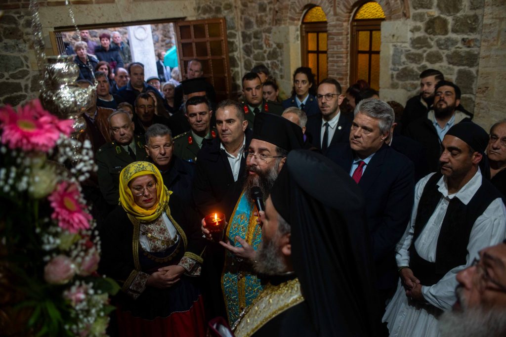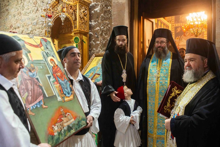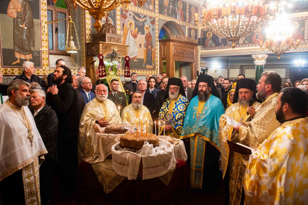 Εν συνεχεία τελέσθηκε ο Πανηγυρικός Εσπερινός της εορτής του Ευαγγελισμού της Θεοτόκου και η Ακολουθία της Αρτοκλασίας και προ του πέρατος ο εφημέριος της ενορίας, αρχιμανδρίτης Νεόφυτος Σαχλάς, ομίλησε καταλλήλως, παραθέτοντας το ιστορικό της καταστροφής του ναού και την αναγέννησή του μέσα από τις στάχτες.