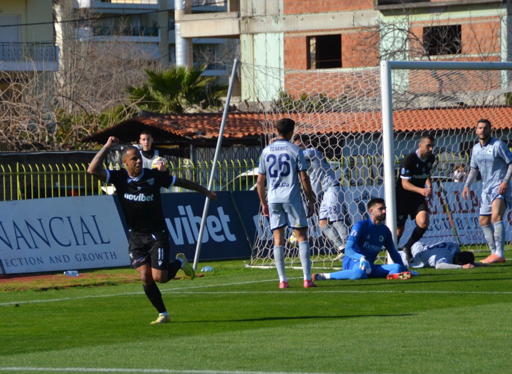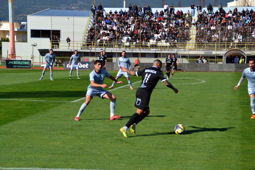 Η χρυσή νίκη στο σημερινό παιχνίδι στο Στάδιο της Παραλίας ήρθε μπροστά σε 2 χιλιάδες θεατές, με τον Μιράντα να ανοίγει το σκορ στο 26’ με σουτ από πλάγια αριστερά (τη μπάλα έσπρωξε πιο βαθιά στα δίχτυα ο Μάντζης, αλλά ήδη είχε περάσει τη γραμμή).