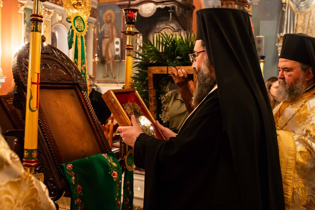 Την Ιερά Εικόνα μετέφερε ο Πρωτοσύγκελλος της Ιεράς Μητροπόλεως Αρχιμ. Φίλιππος Χαμαργιάς, ένεκα των εορταστικών εκδηλώσεων της ενορίας της Αναλήψεως, επί τη ευκαιρία της αφιερώσεως, υπό της Ιεράς Συνόδου της Εκκλησίας της Ελλάδος, της Εβδομάδος Εξωτερικής Ιεραποστολής, συσχετίζοντας τον Α’ Ιεραπόστολο της Αφρικής, Άγιο Χρυσόστομο (Παπασαραντόπουλο) και την Ιερά Μονή Χρυσοκελλαριάς, της οποίας υπήρξε Ηγούμενος επί 7 χρόνια.