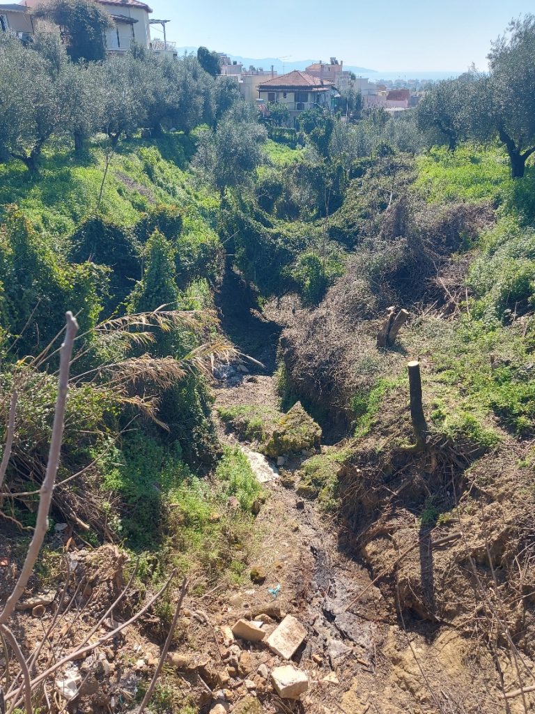 Ειδικότερα, κόπηκαν δέντρα, το ρέμα άνοιξε ξανά, η μία ελιά που είχε πέσει στην κοίτη απομακρύνθηκε, όπως και μία ακόμα που ήταν έτοιμη να πέσει, ωστόσο τα χώματα παραμένουν στο νότιο μέρος.