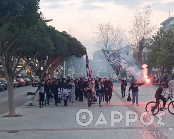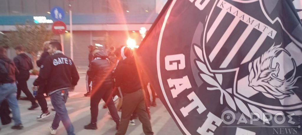 Ακόμα φίλοι της Καλαμάτας με σημαίες και κασκόλ γυρνούν στους δρόμους της πόλης.