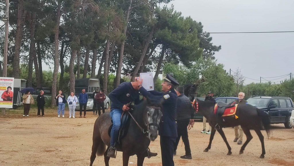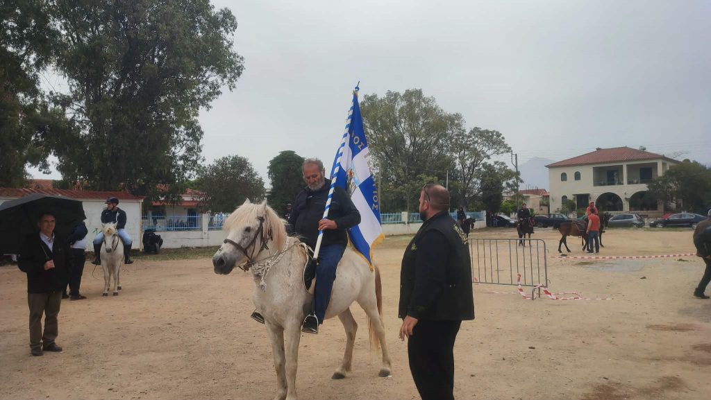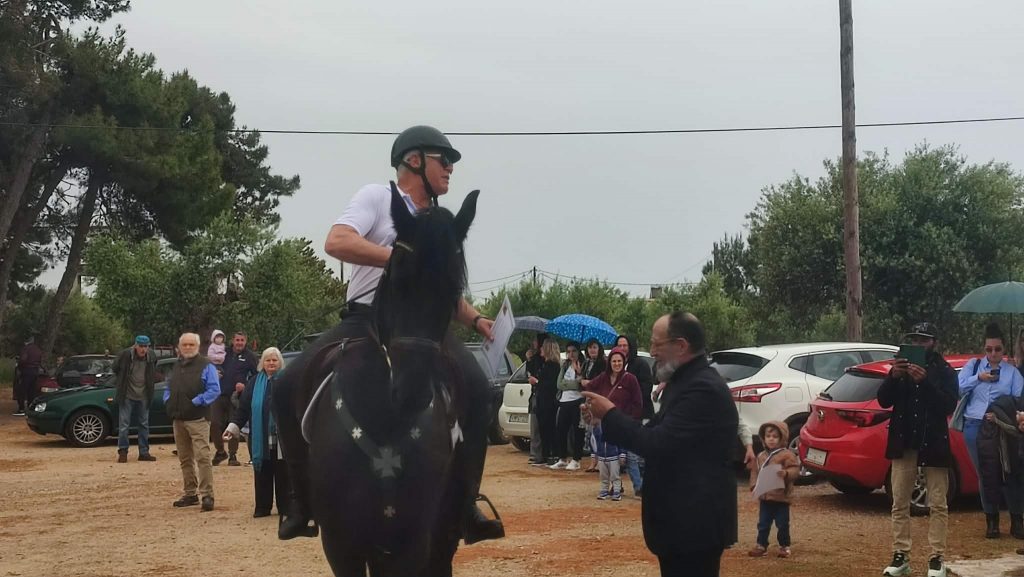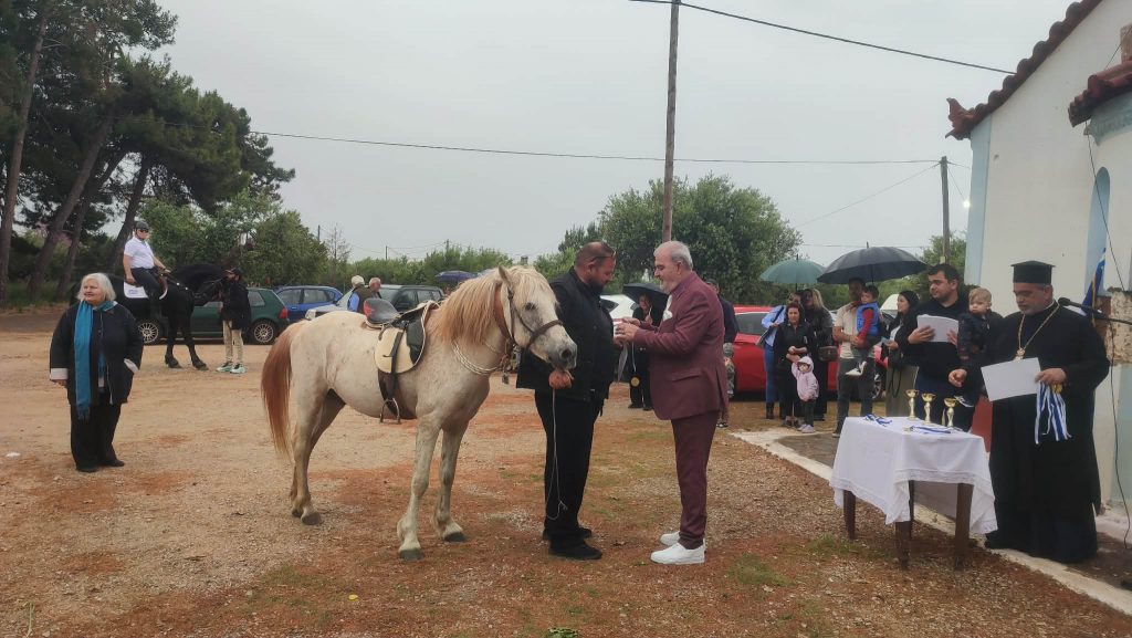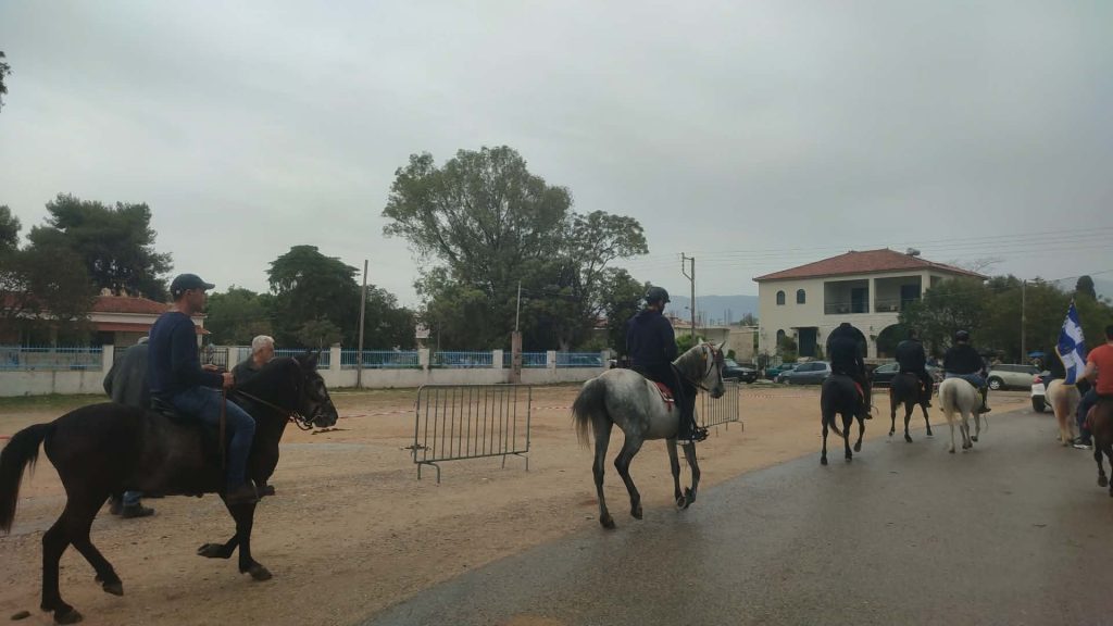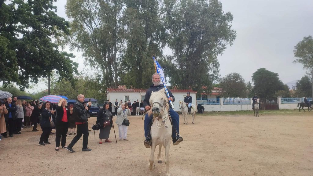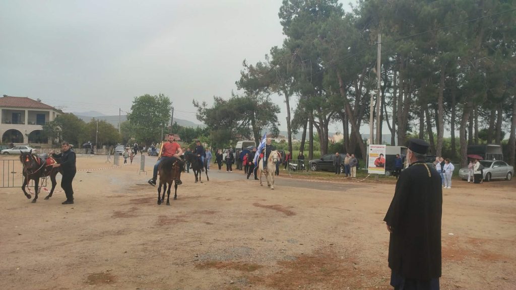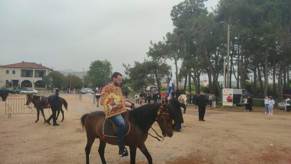 Έπειτα ξεκίνησε η αναβίωση του εθίμου των ιππέων. Οι ιππείς με την ιερή εικόνα και τη σημαία του Αγίου Γεωργίου ξεκίνησαν από τον προαύλιο χώρο της εκκλησίας, πέρασαν από τις οδούς Αντ. Μιχαλακέα, Ι. Μεταξά, Παναγιώταρου, Βοριανών, Κεφαλά, έκαναν το γύρο της κεντρικής πλατείας και ακολουθώντας τη διαδρομή προς Λιμενάρι, οδούς Ι. Σπέντζα και Πανάγου Λελώνη επέστρεψαν στον προαύλιο χώρο της εκκλησίας του Αγίου Γεωργίου.