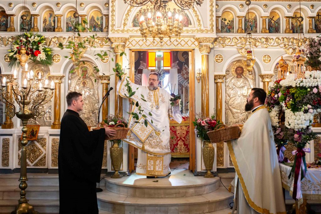 Πλήθη πιστών συμμετείχαν στην Θεία Λειτουργία και έψαλλαν τον Ύμνο των Τριών Παίδων και το Προκείμενον “Ανάστα ο Θεός”, λαμβάνοντας την ευλογία τον δαφνών, ως συμβόλων της νίκης κατά του θανάτου.