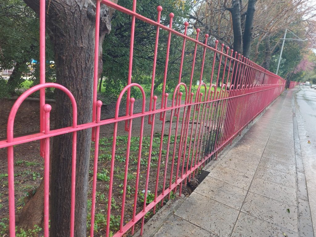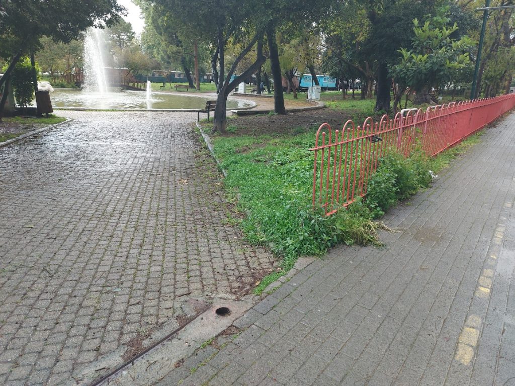 Ξεκινάμε από τη σιδερένια περίφραξη, καθώς σε πολλά σημεία έχουν δημιουργηθεί τρύπες, δεν έχει το ίδιο ύψος και έχει να συντηρηθεί από τη θητεία του προηγούμενου δημάρχου που την τοποθέτησε.