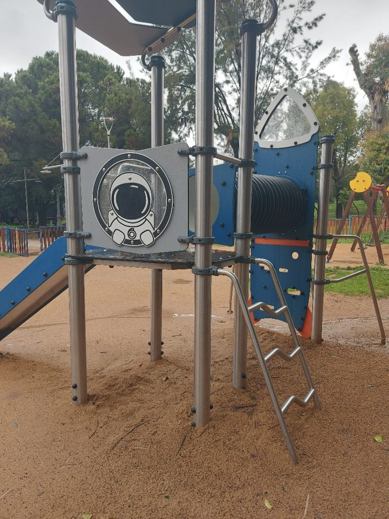 Φτάνουμε στη δεύτερη παιδική χαρά… Εκεί με λύπη διαπιστώσαμε ότι το παιχνίδι που τοποθετήθηκε καταστράφηκε ξανά, αφού κάποιοι ενήλικοι ήθελαν να «παίξουν», ασχέτως αν πρόκειται για παιδικό παιχνίδι.