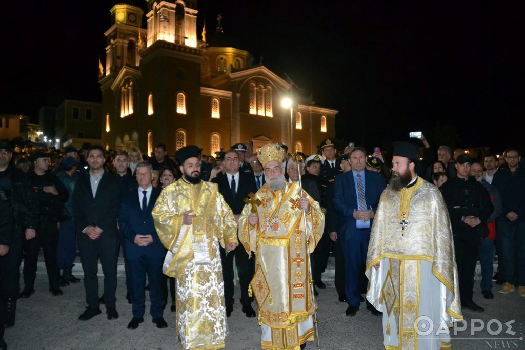 Στον Ιερό Μητροπολιτικό Ναό της Υπαπαντής του Χριστού Καλαμάτας, προέστη της Ακολουθίας ο Σεβασμιώτατος Μητροπολίτης Γέρων Λεοντοπόλεως κ. Γαβριήλ, πλαισιωμένος από τους εφημερίους του Μητροπολιτικού Ναού, συμπροσευχομένου του Σεβασμιωτάτου Μητροπολίτου Μεσσηνίας κ. Χρυσοστόμου, ενώ παρέστησαν ο πρ. Πρόεδρος της Ελληνικής Δημοκρατίας κ. Προκόπιος Παυλόπουλος, ο Υφυπουργός Προστασίας του Πολίτη κ. Ιωάννης Λαμπρόπουλος, ο Δήμαρχος Καλαμάτας κ. Αθανάσιος Βασιλόπουλος, ο Αντιπεριφερειάρχης Μεσσηνίας κ. Ευστάθιος Αναστασόπουλος και εκπρόσωποι των στρατιωτικών και τοπικών αρχών.