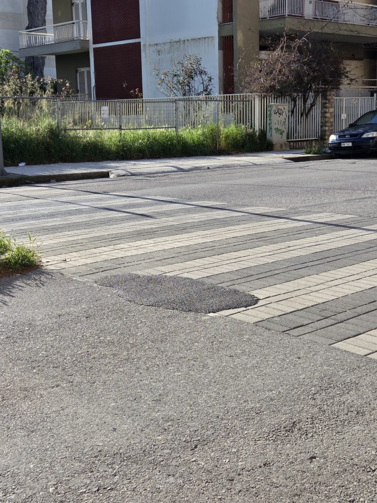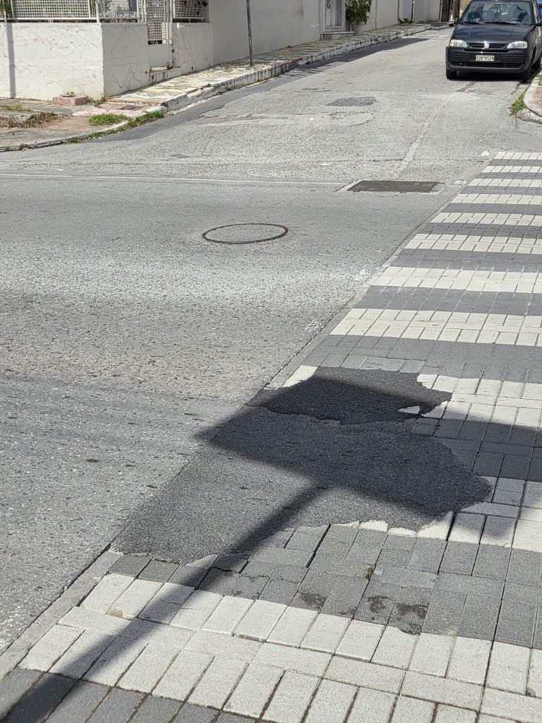 Υ.Γ.: Επισυνάπτω φωτογραφίες από ορισμένα σημεία όπου οι κυβόλιθοι έχουν «μπαλωθεί» με πίσσα!