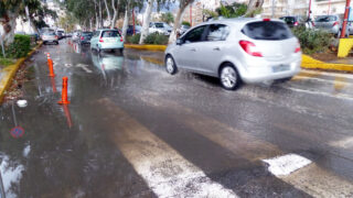 Στην οδό Αρτέμιδος, στο ύψος αλυσίδας τροφίμων, όποτε βρέχει σχηματίζονται λίμνες νερού. Στο συγκεκριμένο σημείο υπάρχει και διάβαση...