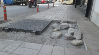 Στην οδό Γιατράκου κάποια υπηρεσία εκτελεί εργασίες στο πεζοδρόμιο. Χωρίς κανένα προστατευτικό, όμως, κινδυνεύει να γίνει… παγίδα για...