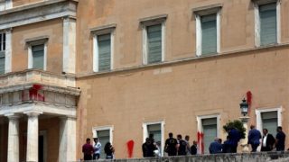 Επίθεση του Ρουβίκωνα με μπογιές και καπνογόνα στη Βουλή