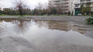 Η φωτογραφία απεικονίζει το δημοτικό χώρο στάθμευσης στο Δημοτικό Στάδιο. Μια απέραντη λίμνη να περιστοιχίζεται από μικρότερες. Πώς...