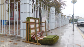 Στον πεζόδρομο, μπροστά από το Μπενάκειο Δημοτικό Σχολείο, άφησαν τον άχρηστό τους καναπέ! Ντροπή… Ω.