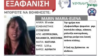 Υπάρχει εξαφάνιση 35χρονης από την περιοχή του Ασπροχώματος, Καλαμάτας, Μεσσηνίας. Εάν γνωρίζετε κάτι επικοινωνήστε με την υπηρεσία Silver...